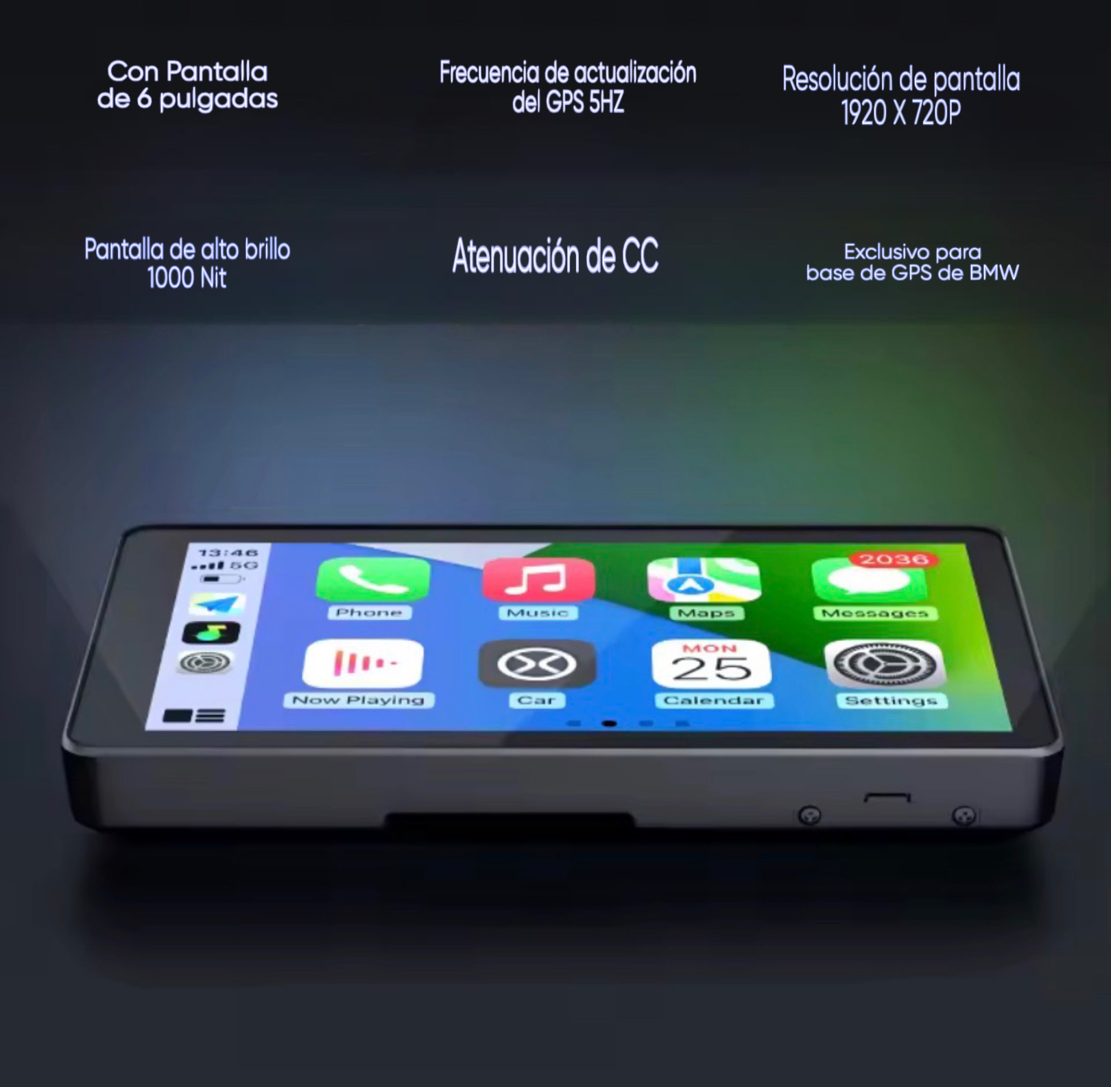 APPLE CARPLAY EXCLUSIVO PARA BMW MOTORRAD, SE AJUSTA A LA BASE DEL GPS ORIGINAL DE BMW, FÁCIL DE INSTALAR 100% IMPERMEABLE
